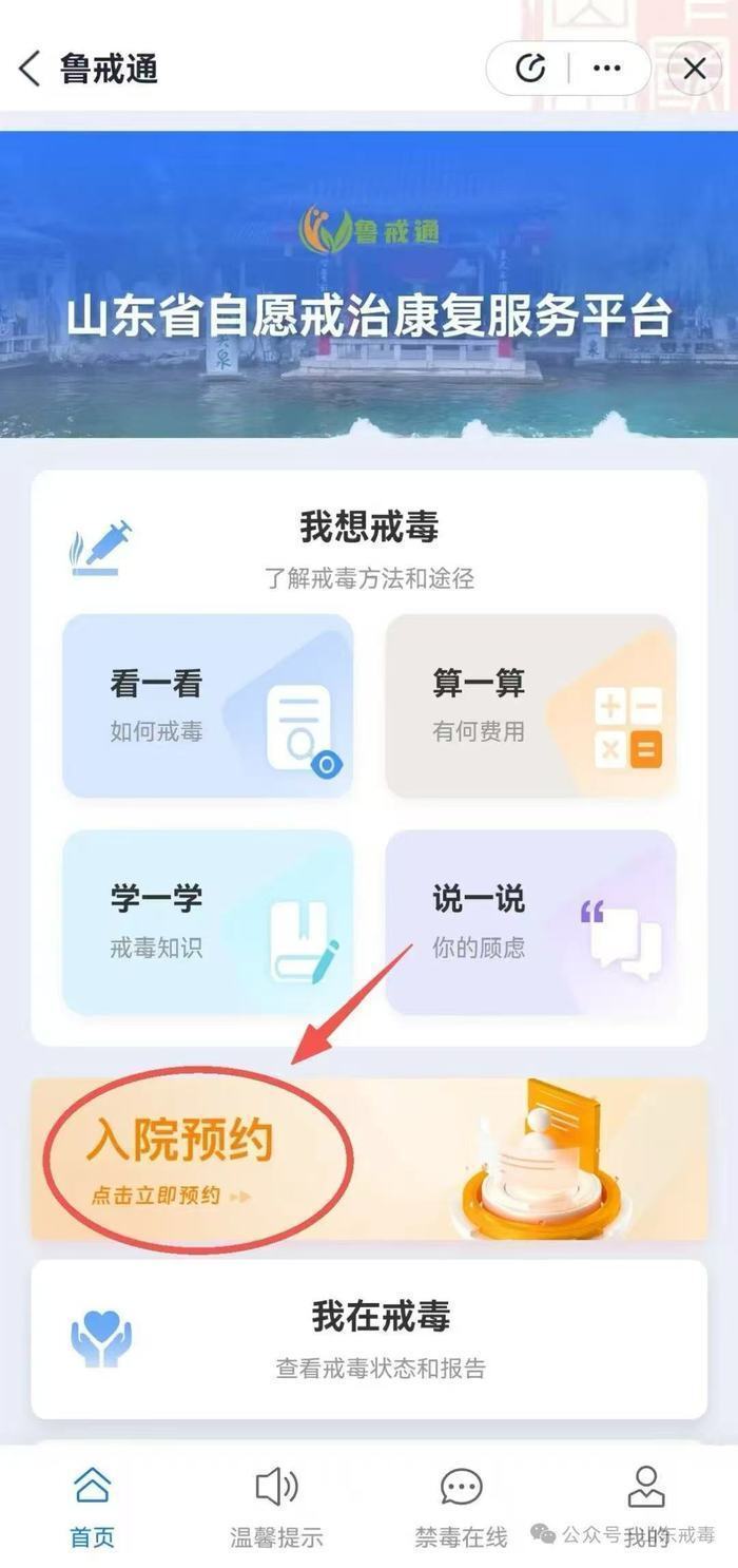 申请渠道方面,中心开通“线上+线下”多途径服务,市民可通过“爱山东”APP搜索“鲁戒通”在线预约,拨打官方热线0533-6689567咨询预约,也可由公安、司法行政等部门规劝引导入院,或直接前往现场办理。入所实行“一站式”办理,全程有专人引导,通过接洽谈话、全面体检、心理评估、资料建档等六大步骤完成收治。